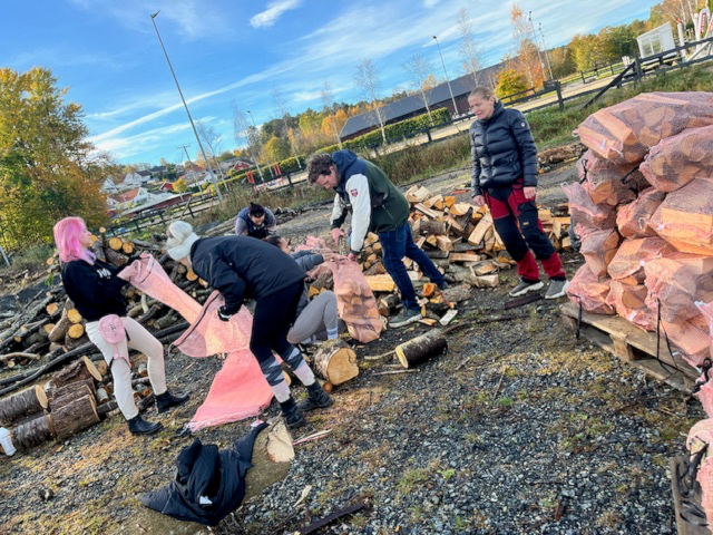 Medlemmene har selv felt og kappet trærne, og Idretten Skaper Sjanser-gjengen har pakket veden med glimt i øyet 🌲💪