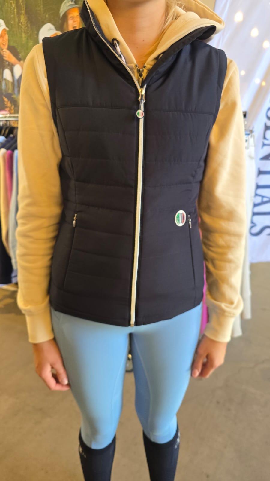 Lekker vest til alle årstider med timeglass passform til damer. Glidelås i sølv som en ekstra detalj. Pris inkluderer brodering med AGR logo og klubbnavn. Husk å oppgi størrelse i egendefinert kommentar feltet. Finnes i str. XXS-XXL